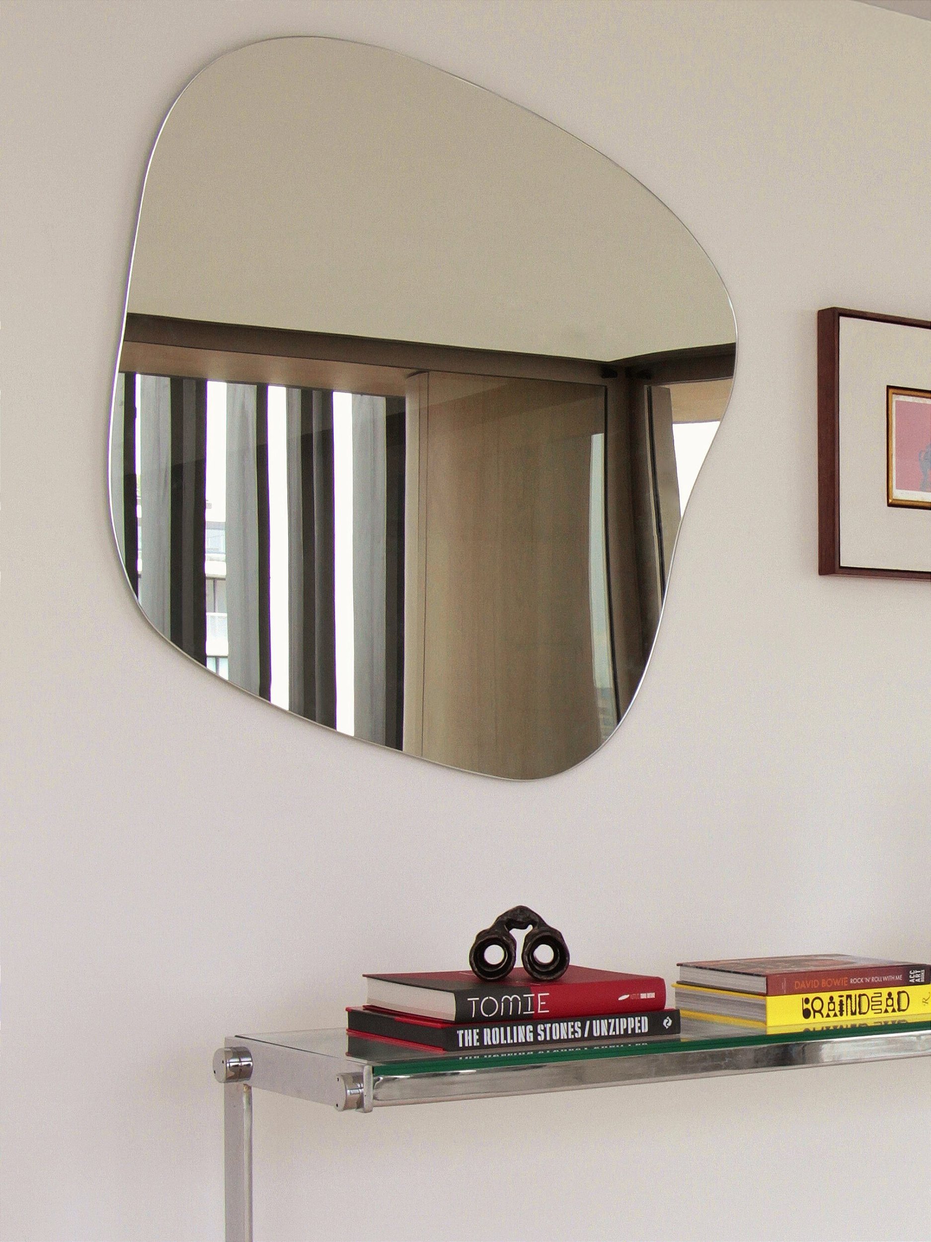 O espelho Tera evoca a força tranquila da natureza. Com contornos suaves e orgânicos, sua forma transmite solidez e equilíbrio, como uma pedra moldada pelo tempo. As linhas amplas e generosas criam presença visual sem excessos, reforçando uma estética de conexão com o essencial. Tera é terra — um convite ao enraizamento, à contemplação e ao acolhimento do lar como refúgio. Uma peça autoral que harmoniza naturalidade e design, ideal para ambientes que buscam personalidade.
